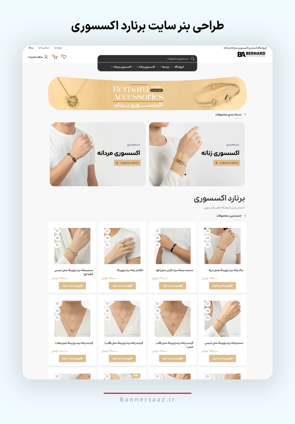 امروز در یکی از جدیدترین سفارش های ما در سایت بنرساز، طراحی بنر سایت برنارد اکسسوری را داشتیم که در ادامه طراحی ها را مشاهده میکنید. این سایت به صورت تخصصی در زمینه اکسسوری فعالیت میکند و شما میتوانید برای خرید اکسسوری به این سایت مراجعه کنید.